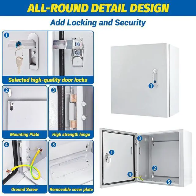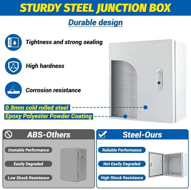Convenient installation and maintenance: The junction box is equipped with a removable galvanized mounting plate, which is convenient for installing electrical components. The back of the electrical box is equipped with multiple wall-mounting holes and mounting holes, which allow users to choose the appropriate fixing method according to the installation environment, such as wall-mounting iron sheets or expansion screws. At the same time, a full set of installation accessories is provided to make the installation process easier and faster. The internal structure of the electrical box is reasonable, which facilitates the installation and maintenance of electrical components.