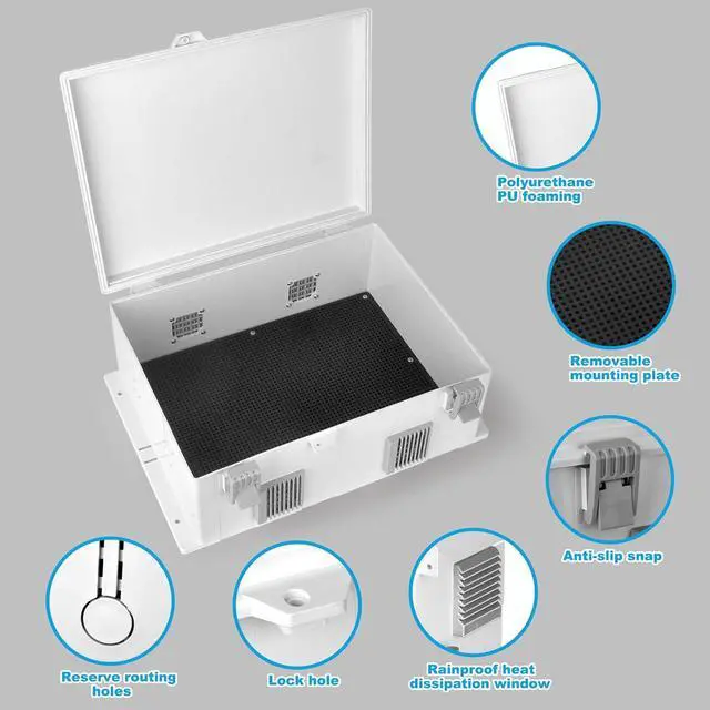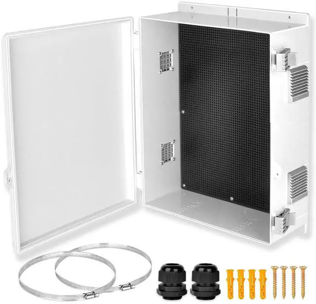 EASY FOR DIY - Simple hinged cover, easy open and close, This sturdy junction box can be drilled and shaped easily without cracking, so its also suitable for your various DIY projects. safety lockable design to prevent un-authorized openings, 2 different installation methods available, wall mounted or pole mounted with equipped accessires.