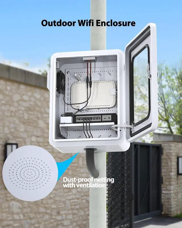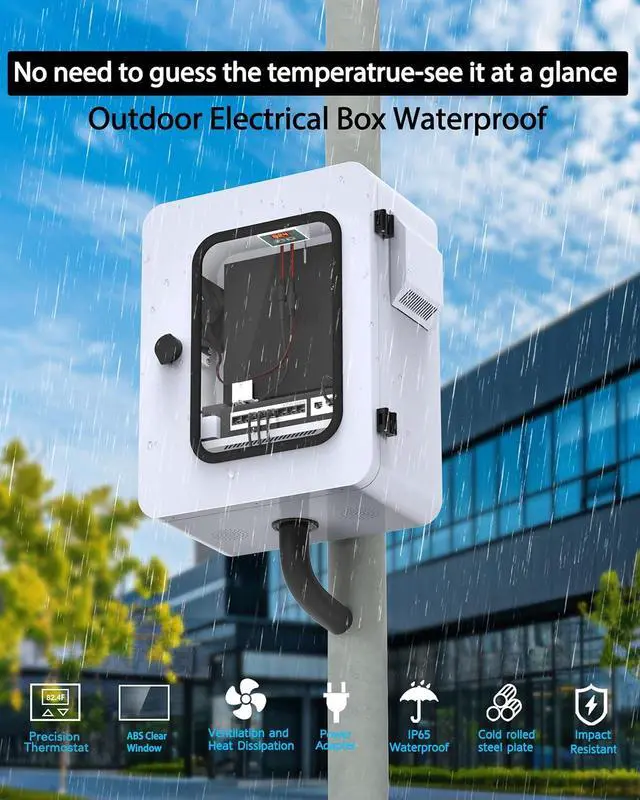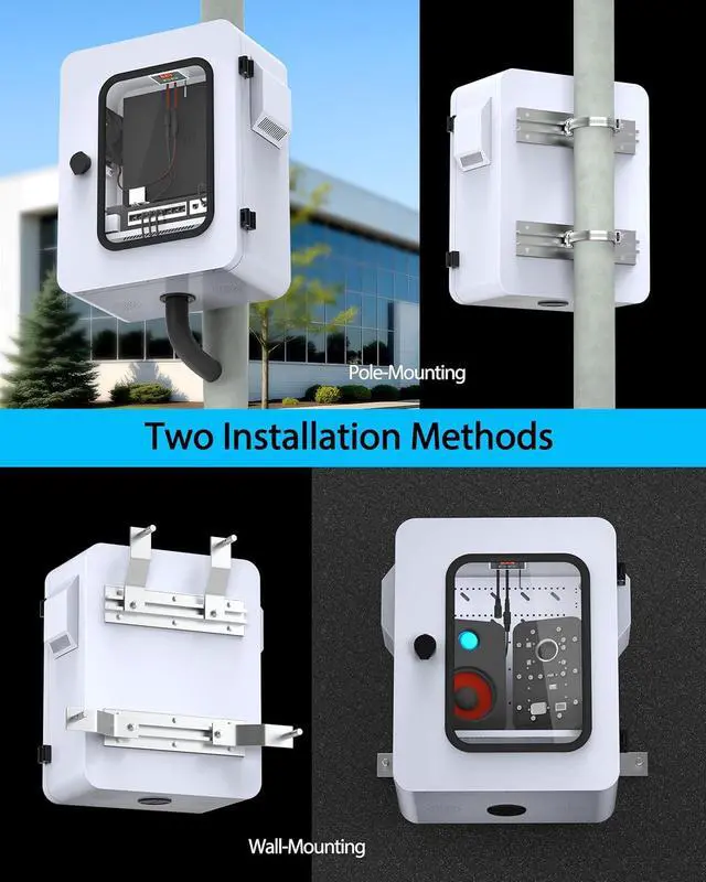 Reinforced Aluminum Back BeamOutdoor Electrical enclosure size: 17.7 inches x 13.8 inches x 7.9 inches, free to wall-mount or pole-hugging installation.