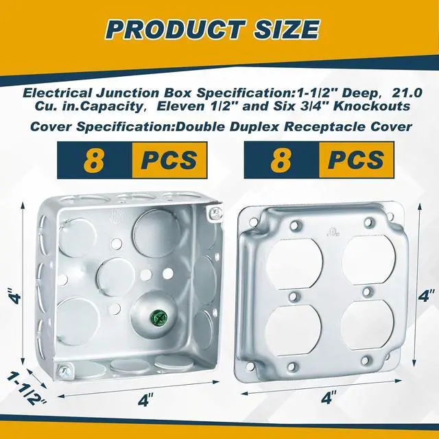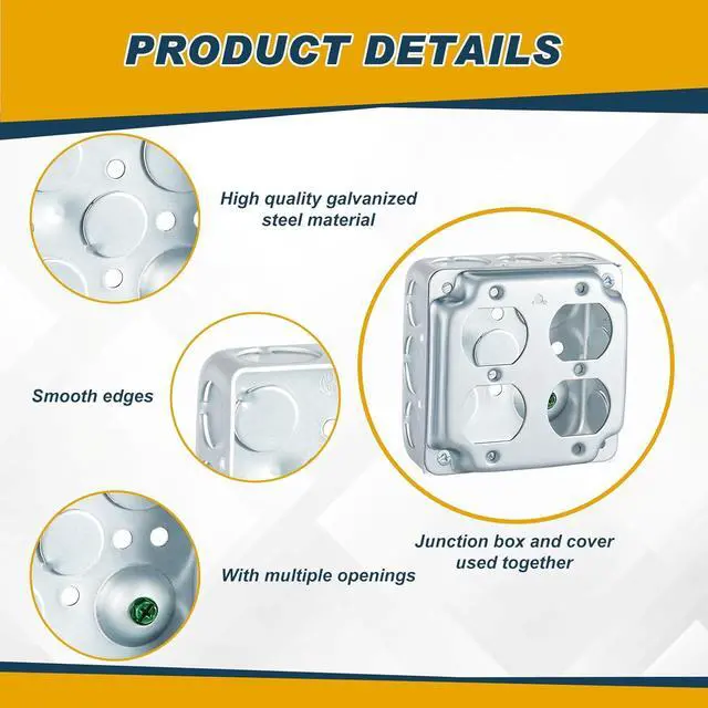 More Organized Wiring System: every electric junction box boasts of multiple knockouts including 11 pieces of 1/ 2'' knockouts and 6 pieces of 3/ 4'' knockouts; This thoughtful design enables a clutter free and secure wiring system, embodying a function focused approach to cater to your electrical demands