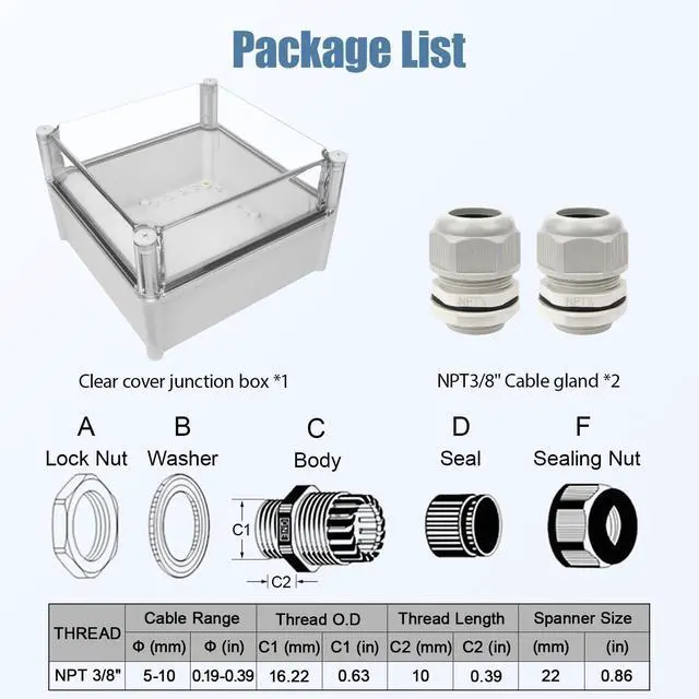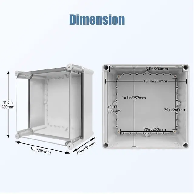 Inner dimension: 10.1 x 10.1 x 6.6; Please refer to picture for specific data if you need to consider any internal components such as screw studs or dividers while installation.