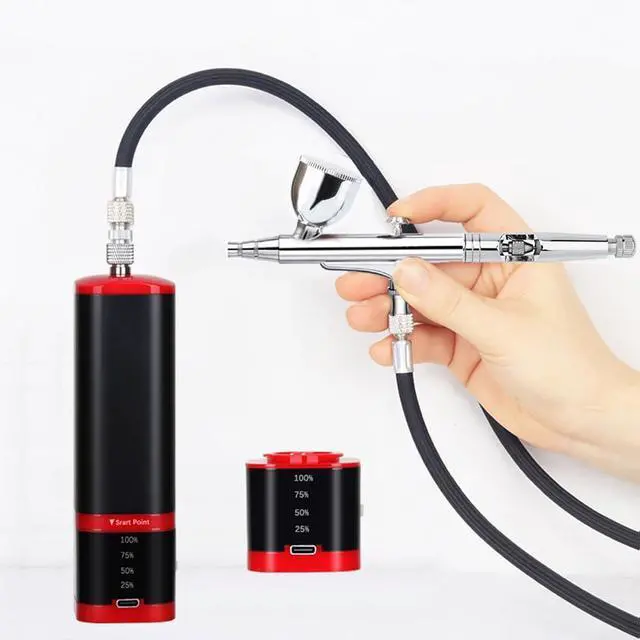 New upgraded air brush penUpgraded airbrush pen with bigger paint inlet hole, which means the paints easy to go through the hole. for one thing, it can avoid airbrush paint blocking, and secondly, it can help cleaning it after use, and it is proper for different air brush spray use such as makeup foundation, nail beauty, cake decorations, and model spray, minatures color, art& crafts and barbers for hair enhancement etc.