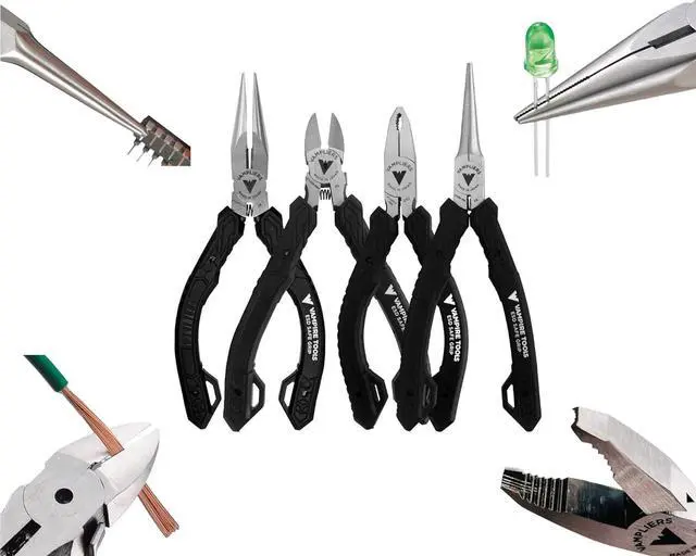 VT-001-5MN: 4.75" Mini Precision Nippers ESD Safe, Sharp Cutting Jaws for Precision Work on Electronics Copper Wires VT-001-5NN: 5.5" Mini Needle Nose Pliers Non-serrated ESD Safe for Precision Work on PCB/SMD Electronics and Small Components