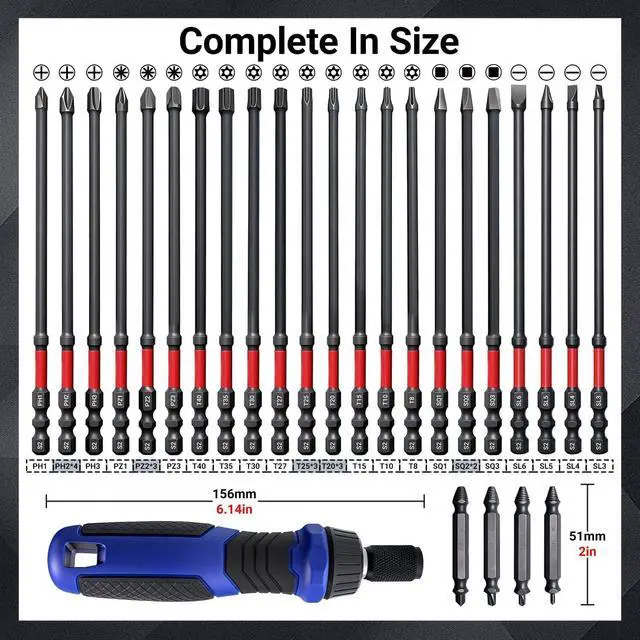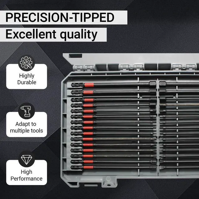 Ergonomic design: Deep-reach magnetic sockets provide extra clearance for recessed fasteners, perfect for appliance repair. Comes with a heavy-duty case featuring engraved size markings and secure compartments, keeping your impact bits and drivers neatly sorted for quick job-site access.