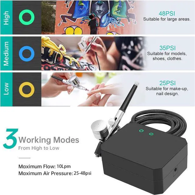 Compact and portableThis small airbrush body weighs only 100g, You can use it for a longer time without your hand getting tired. in addtional, its lightweight design and convenient size make it a perfect choice for those who need a portable tool for their artistic endeavors