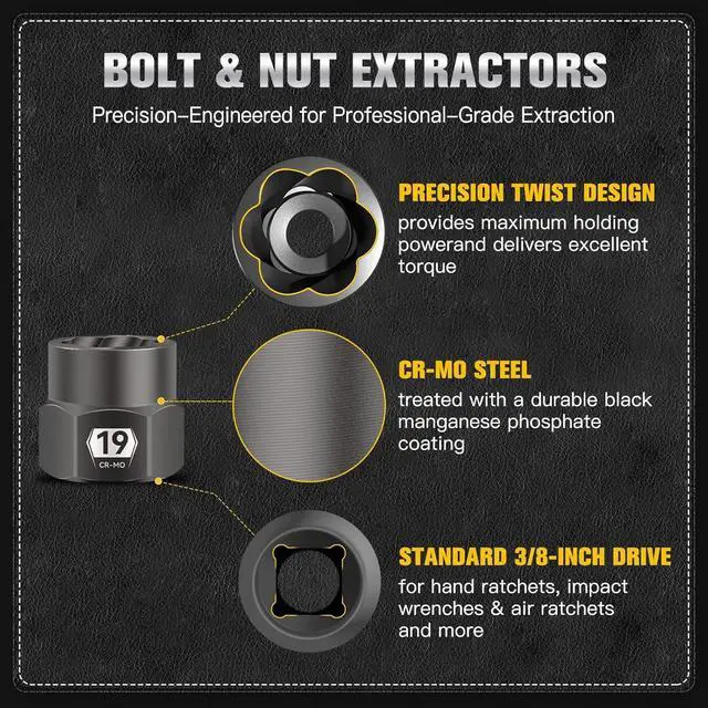 Portable & Reliable With WarrantyDesigned for reliability, Extractor Tools meets ANSI B 107.110 -2020 standards for impact sockets, ensuring durability and precision for professional and daily use. We sincerely solve all kinds of problems for customers, if you have any questions about the products, please tell us at any time. It comes with a one-year after-sales service.