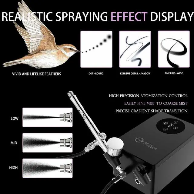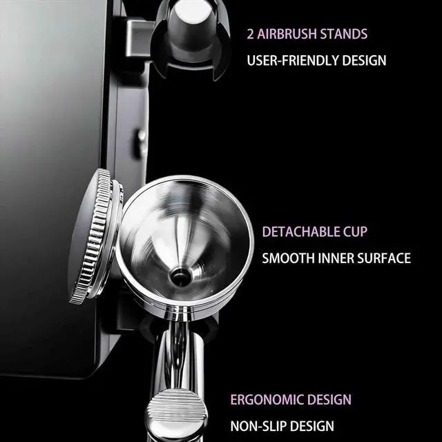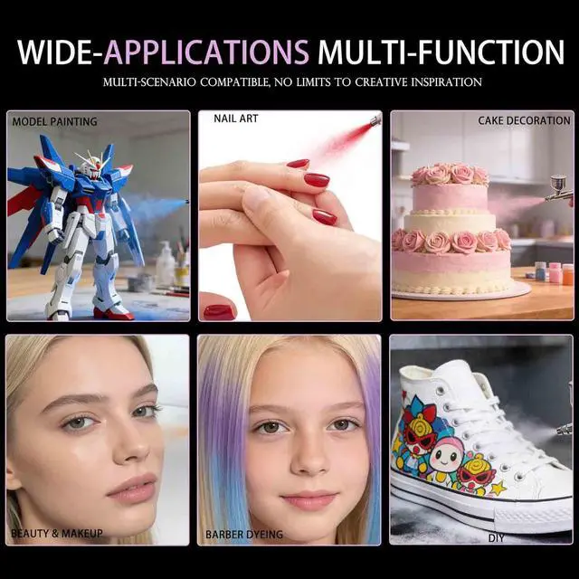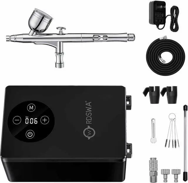All-in-One Airbrush Kit with Enhanced Usability & VersatilityComplete airbrush kit with compressor combines high-performance pump, dual-action gun, and smart control; touch screen, digital display, quiet operation, and adjustable pressure make it the ideal multi-purpose spraying tool for all creators.