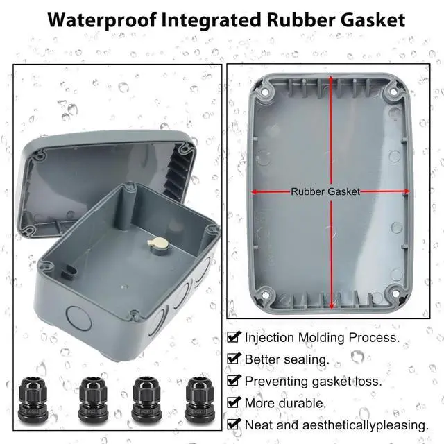 With 4PK M20* 1.5 Cable GlandsThe waterproof project box can be configured with 20 mm Cable Glands Joints, you can purchase it additionally according to your needsASIN: B077QMB3MG). The waterproof junction box suitable for aboard, garage, house, garden, farm, pond, underground, terrace, workshop, construction site, external wiring or external lighting etc.