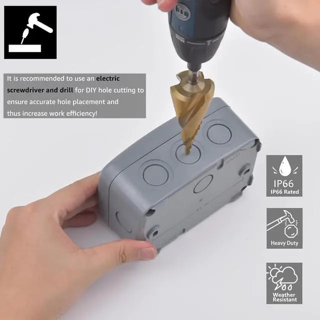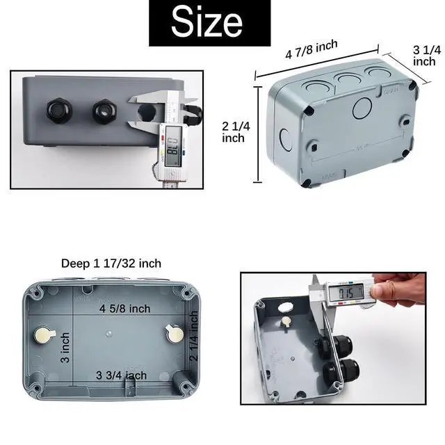 Watertight PVC Junction Box 4.6 x 3The DIY opening hole design greatly ensures the sealing of the waterproof project box. Up to 9 holes can be distributed on the 4 sides and bottom of the waterproof box. You can make holes according to your needs