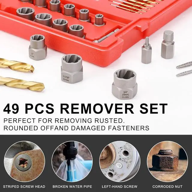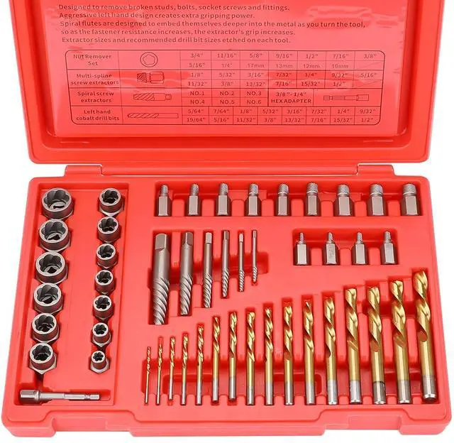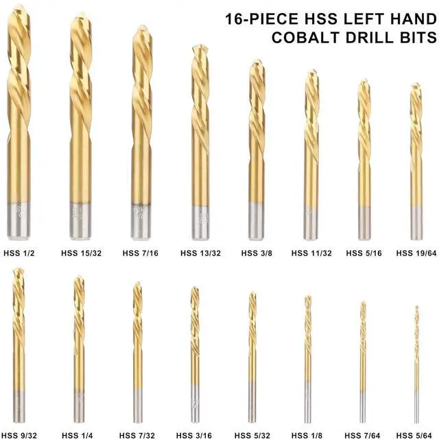 Left-hand drill bits: The kit features 16 left-hand drill bits in various sizes, ranging from 5/64" to 1/2" (imperial). These drill bits are designed to rotate counterclockwise and can be used in conjunction with the extractors to remove damaged bolts or screws.