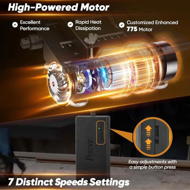 Accurate Cutting portable table saw's panel has clear markings to ensure stable, accurate, and straight cuts. The integrated cast iron body is sturdy and durable, suitable for long-term use. Transparent baffles prevent debris from splashing, and the bottom corners are equipped with anti-slip and shock-absorbing rubber feet to prevent shifting during operation. mini multi-functional table saw also includes a soft shaft that can hold drilling heads with shank diameters of 0.5 - 3.2 mm.