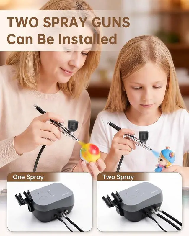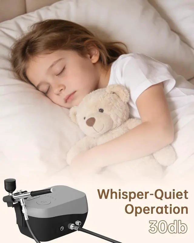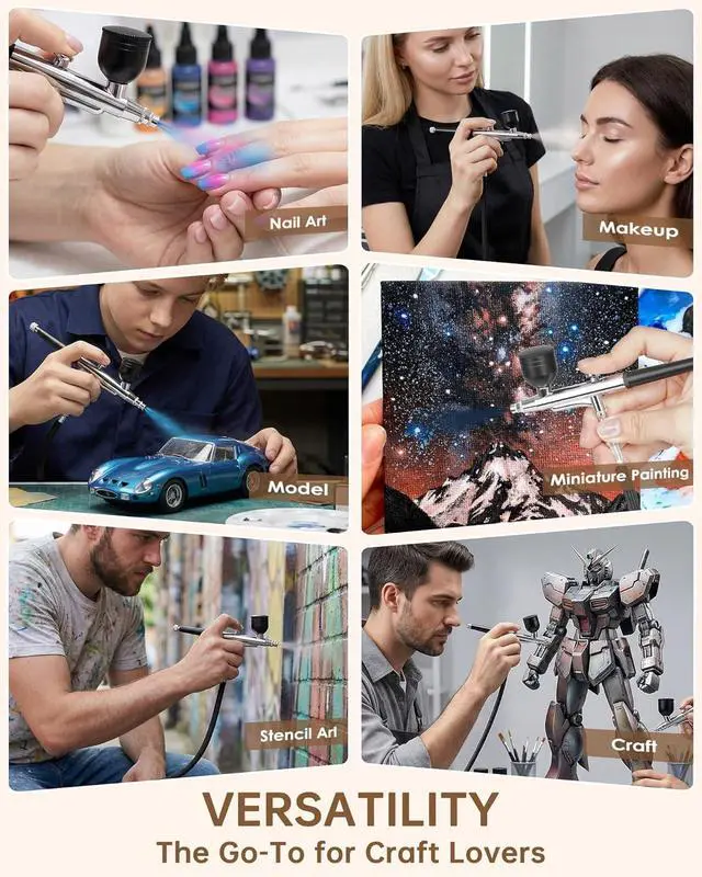 Clean & Low-Noise Operation: The airbrush sets comes with specialized cleaning tools to easily remove paint residue and effectively prevent nozzle clogging. It also includes a detailed user and cleaning manual, ensuring both beginners and professionals can master it quickly. Boasting low operating noise, suitable for late-night creation or small-space use