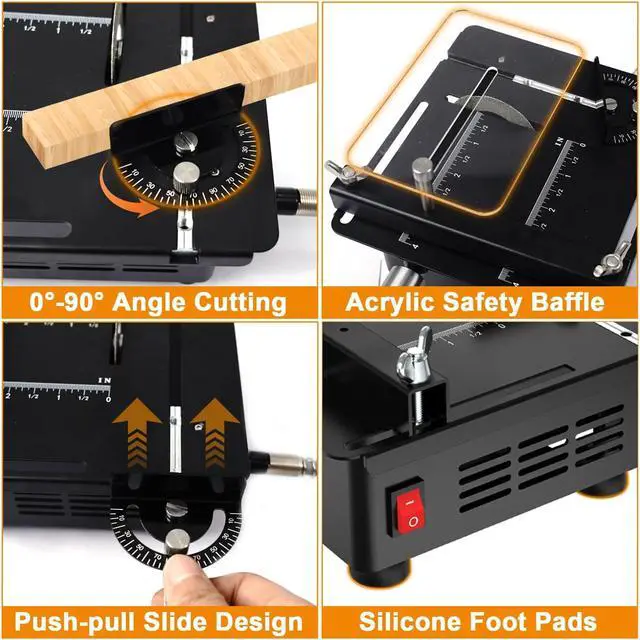 Accurate & Stable Cutting SystemEngineered for precision, this mini table saw for crafts features a cast iron worktable with laser-etched guides for ± 0.2 mm accuracy. The system includes a transparent debris guard and shock-absorbing pads to stabilize delicate cuts on PCB, acrylic, and copper.