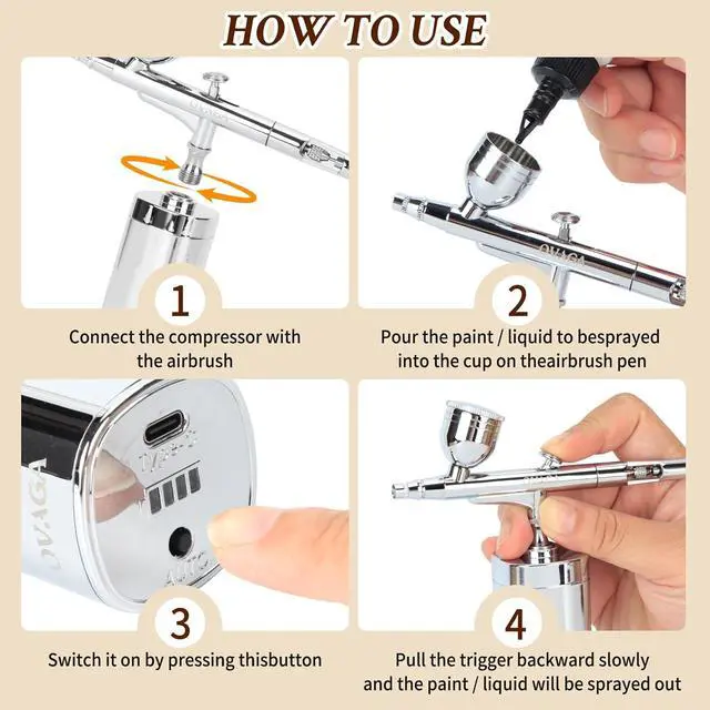 Quick Charge & Reliable Performance Equipped with a high-efficiency battery, this air brush set achieves a full charge in just 30 minutes via the included Type-C charging cable (compatible with laptops, power banks, or USB chargers). Enjoy 30-40 minutes of continuous runtimesufficient to complete most projects without interruption.