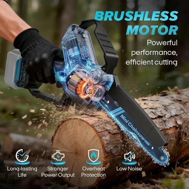 [Comprehensive Safety & Protection] Work with confidence using our mini chainsaw. It features a 90° rotatable safety baffle, an ergonomic hand guard to prevent splashing, and a safety lock button to avoid accidental starts. Complete with a rugged tool box, it's the ultimate handheld chainsaw set for safe operation.