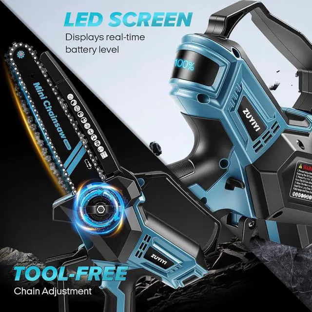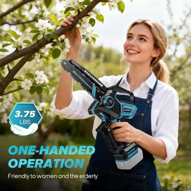 [Upgraded Lubrication & Tool-Free Tension] Maintenance made simple! The upgraded lubrication system ensures smooth cutting, while the tool-free chain tension allows for quick adjustments without extra tools. This small chainsaw keeps your workflow efficient and extends the overall lifespan of the chain.