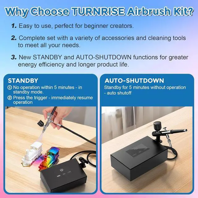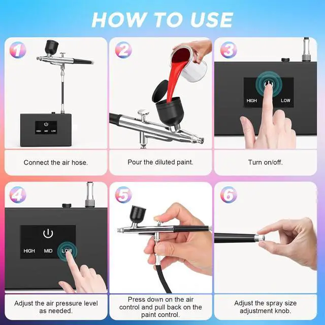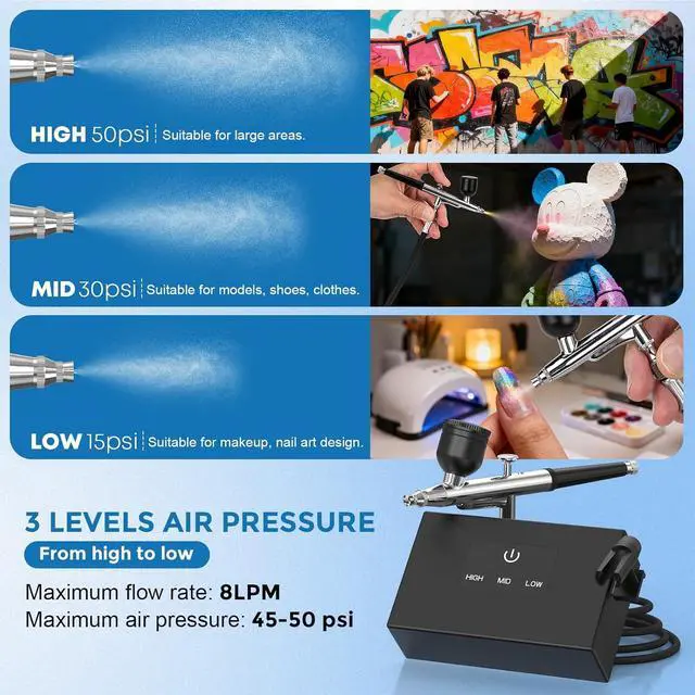 IDEAL FOR ARTISTIC CREATION: The air brush kit with air compressor is built from high-quality alloy materials with solid construction to ensure lasting durability, while its lightweight design and portable size make it an ideal companion for artistic creation.