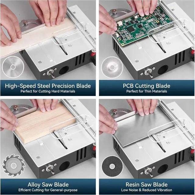 Package Included: The mini table saw comes with 135 accessories to meet all your needs, and it measures 7" L x 5.5" W x 3.1" H (please ensure the size meets your needs before purchasing).