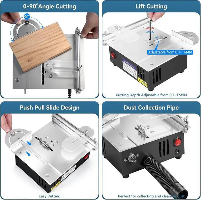 Precision Cutting System: Equipped with newly designed, non-slip, shock-absorbing rubber feet, the saw offers 75% greater vibration absorption, enhancing operational stability and reducing vibration-related inconvenience and accidents. The worktable features a precise 10 cm scale and a 90° adjustable guide fence, meeting your most demanding crafting needs.