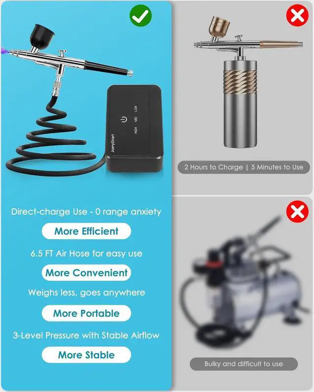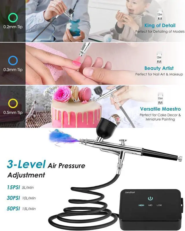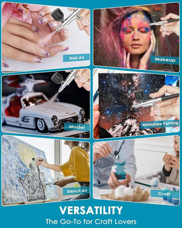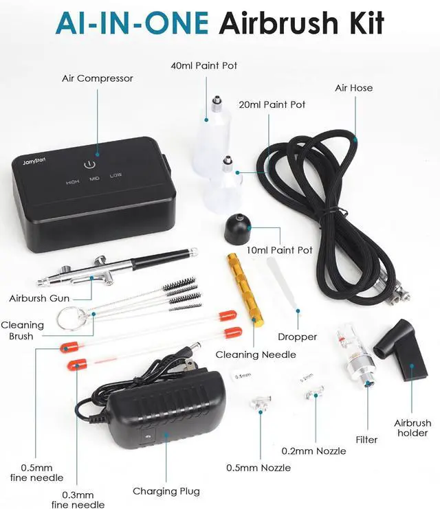 Easy to Use and CleanThe air brush painting set comes with a dedicated cleaning tool to help you easily remove residues and prevent nozzle clogging. It also includes a detailed user and cleaning manual, making it quick and easy to use for both beginners and professionals.