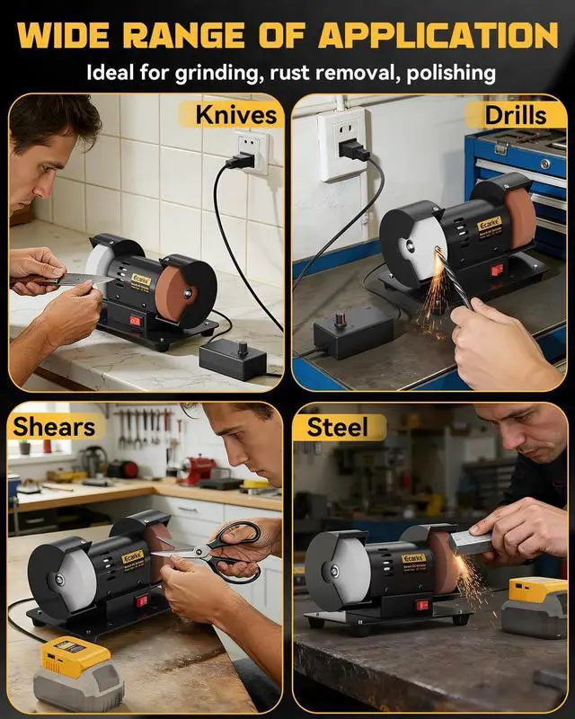 Versatile GrindingFrom delicate pocket knives and well-worn kitchen blades to heavy-duty camping axes, bush hooks, the stable dual-wheel bench grinder ensures consistent, accurate beveling with every pass. Ideal for grinding, rust removal of knives, drills, punches, steel.