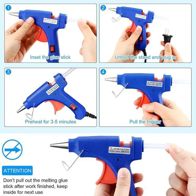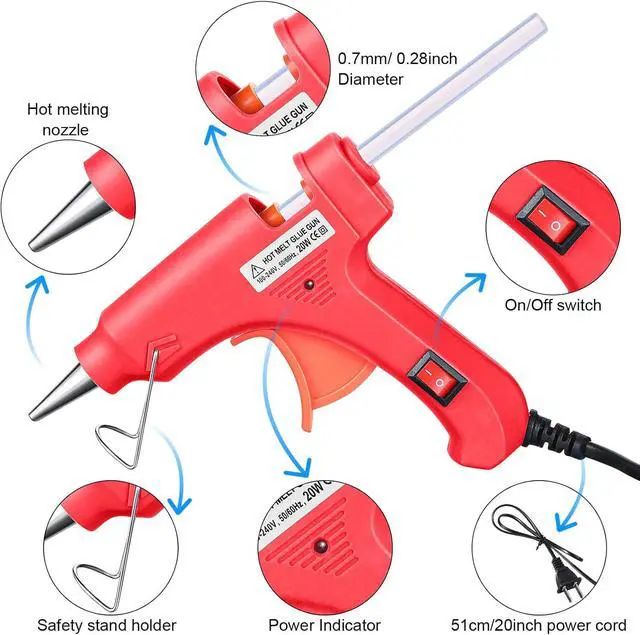 Practical Stand and Compact Size: glue machine gun is equipped with a retractable metal stand that makes it easy and flexible to use for standby, upright or many other positions; In addition, each glue gun measures approx. 3.9 x 5 inches, the glue stick is about 0.28 x 3.94 inch, lightweight and portable