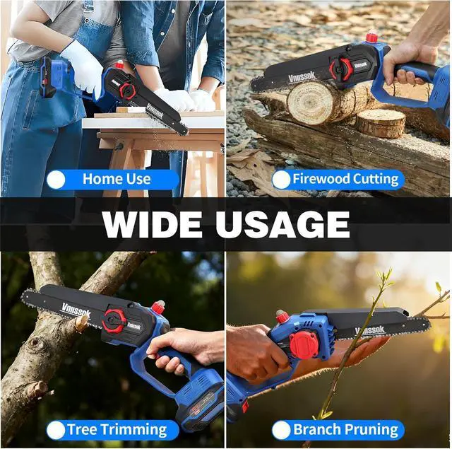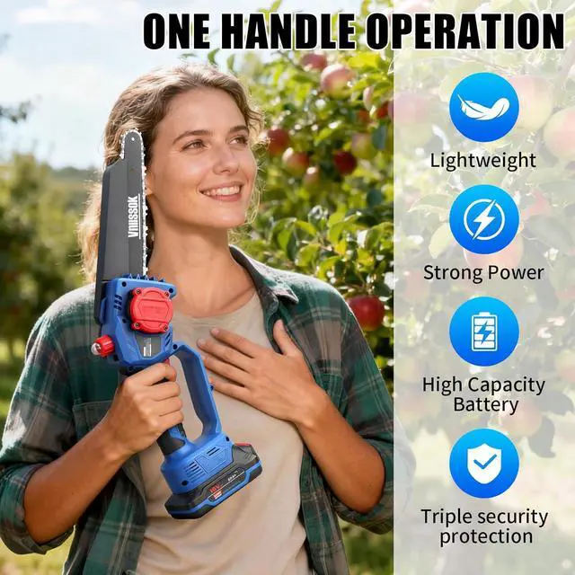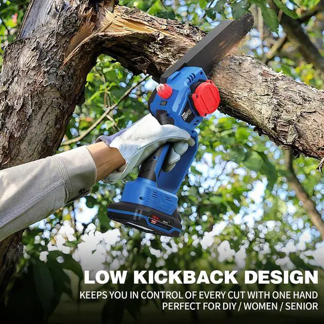 SAFETY YOU CAN TRUST -- This cordless chainsaw with a safety lock to stop accidental starts, an ergonomic anti-slip grip to keep your hands steady, and splash guard to protect you from flying chips. A guide plate cover to avoid nicks and eco-friendly, flame-retardant materials, and youre set for worry-free cutting.