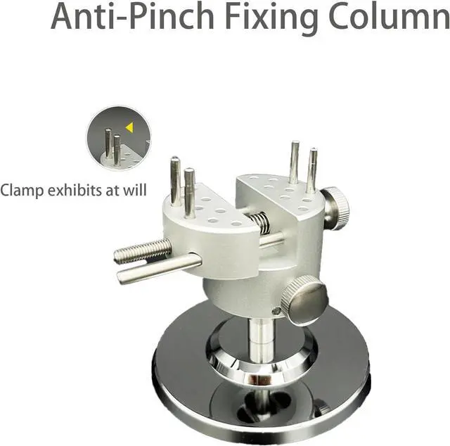 Adjustable size: hand vise can be quickly rotated by tightening the two ends of the vise with the hand. The maximum opening distance of the clamping pins is 65mm but with pins can hold 50mm around goods, and the maximum opening distance of the clamp block is 35mm. It meets the various options of pin fixation and clamping surface fixation.