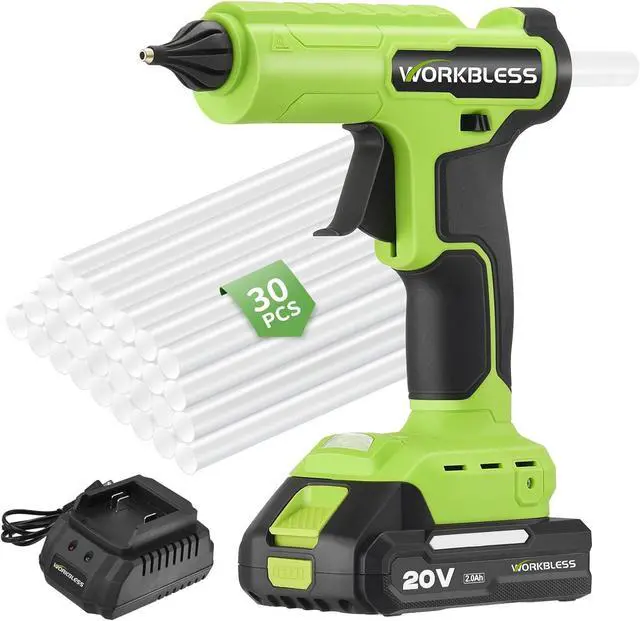 DRIP-FREE PRECISION LIKE A PRO Squeeze with confidence! Our leak-proof silicone nozzle stops oozing, ensuring drip-free precision for clean furniture repairs and delicate fabric patches no burned fingers. The non-stick tip wipes clean instantly. This large cordless glue gun with rechargeable battery is good choice for both delicate and demanding heavy and duty tasks.