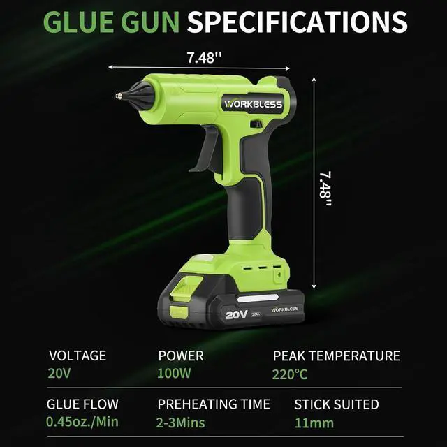 WIDE APPLICATIONS This battery operated glue gun can be qualified for any adhesive challenge! DIY & Crafts Woodworking, furniture repairs, leather work, fabric patches; Industrial Tasks Auto trim, heavy&duty material bonding, thick material repairs; Home Projects Garage fixes, emergency repairs, delicate assembly work; Holiday & Seasonal Holiday decor, decorative projects, quick fixes; Workshop Use General adhesive needs for any materials. Your go-anywhere glue partner.