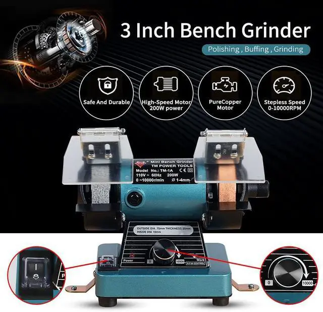 Lightweight and Portable Design At just 2.05 kg our table grinder is easier to manage for hobbyists, jewelry makers, and DIY small business owners, so you can hook it up and use on your desktop, workspace, or other project area.