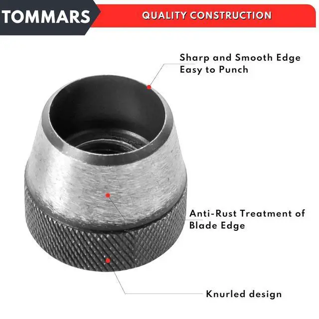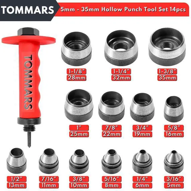 Hole Punch Size: Available in 3/16" (5mm), 1/4" (6mm), 5/16" (8mm), 3/8" (10mm), 7/16" (11mm), 1/2" (13mm), 5/8" (16mm), 3/4" (19mm), 7/8 (22mm), 1 (25mm), 11/8 (28mm), 11/4 (32mm), 13/8 (35mm)