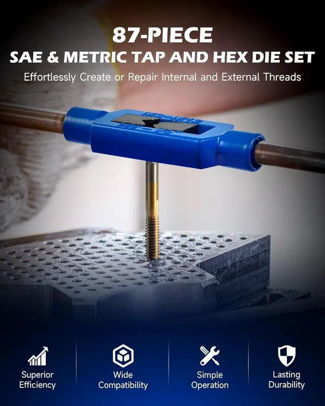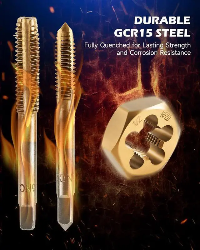 Built for Durability: Made from GCr15 bearing steel with a titanium coating, this threading tool kit ensures exceptional strength, durability, and corrosion resistance for any tough internal and external threading tasks