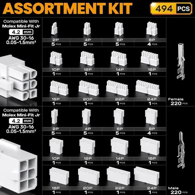 - Compatibility: Compatible with Molex Mini-Fit Jr Series (5557/5559)