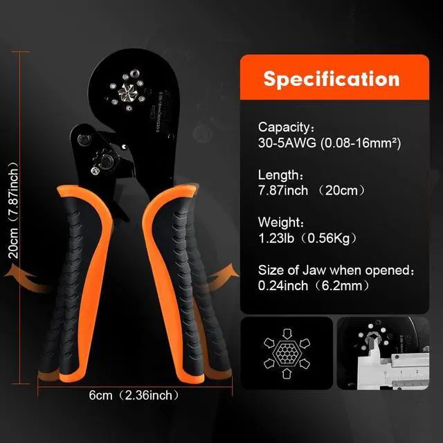 Self-adjustable Ratchet DesignAutomatically adjust itself to the appropriate diameter for wire ferrules terminals provide more accurate crimping
