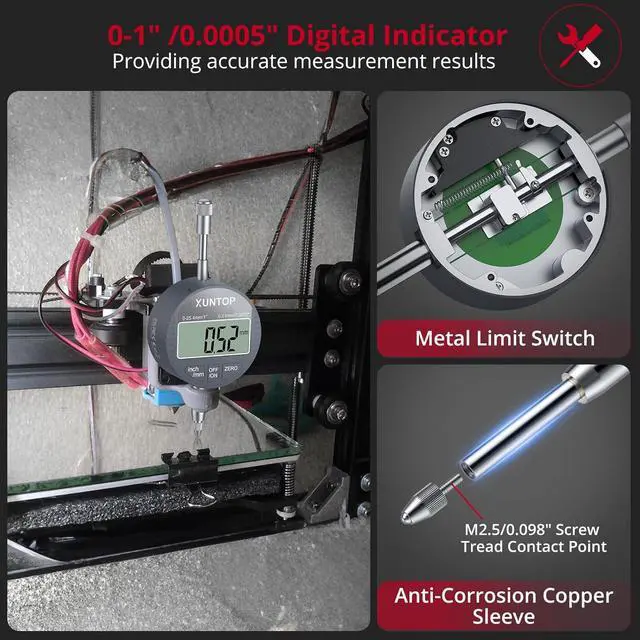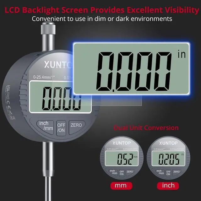 0.0005" Ultra-Precise Dial Indicator CNC & Automotive Workshop EssentialMechanical engineers, CNC operators and welding technicians rely on digital indicator for precision measurements in metal machining, large-component inspections and fabrication. Ideal for automotive assembly lines and 3D printing labs requiring micron-level tolerance verification.