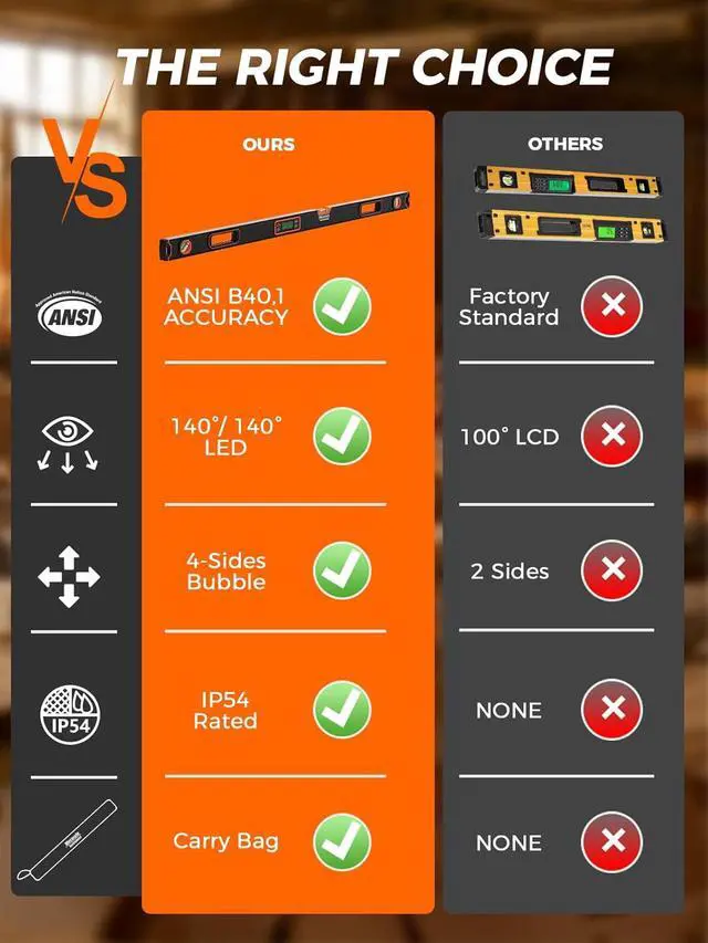 Great GiftThe Digital Level is not only a professional-grade leveler tool for handicraftsmen, builders, and plumbers but also an excellent gift choice for DIY enthusiasts. Whether you're hanging shelves, installing fixtures, or aligning surfaces, this tool provides precise leveling assistance. Additionally, it comes with a convenient carrying case to protect your digital level, allowing for easy portability wherever you go.