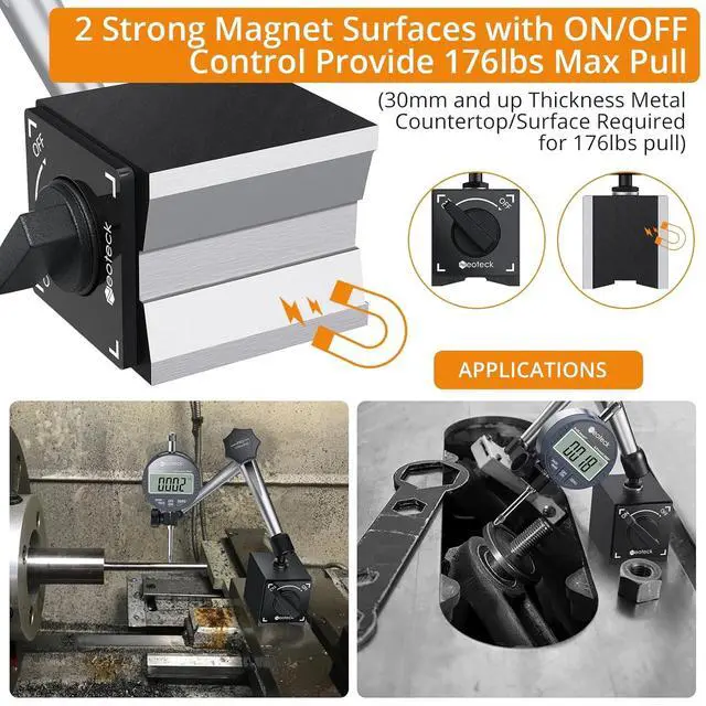 Solid Magnet Surfaces: With On/Off Control. It Can Provide A Maximum Tensile Force of 176lbs/80kg to ensure stability. (Please
