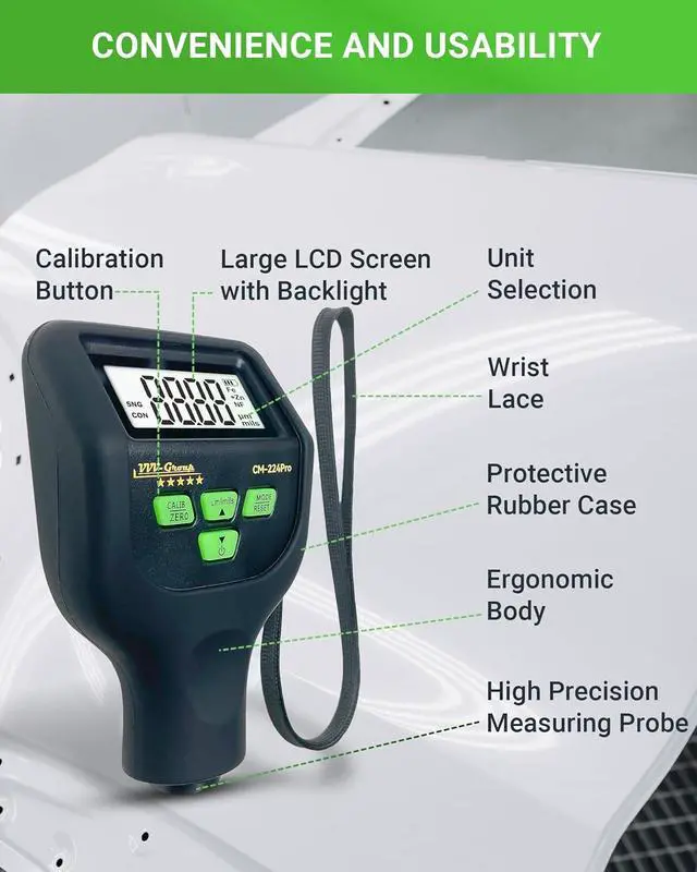 PROFESSIONAL PROBE DESIGN STABLE AND REPEATABLE CONTACT Engineered probe construction supports consistent surface engagement and repeatable readings during multi-point inspection routines in professional workshop environments.