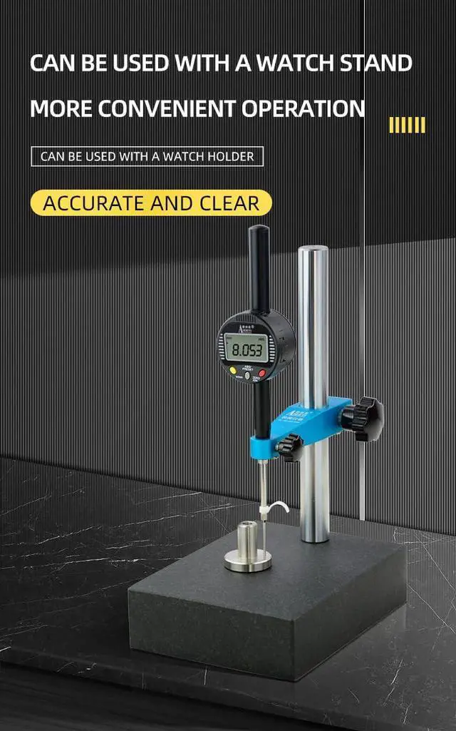 {Output Interface and Data Processing}: The digital dial indicator is equipped with an output interface, which can be connected to computers or other devices for data transmission and processing. Can conveniently record, analyze, and manage measurement data, improving efficiencyPurchase separately. {Usage scenario}: The dial gauge plays an important role in manufacturing, scientific research, and industrial maintenance due to its high precision and wide application range. Accurate measurement through a dial gauge can ensure product quality, improve production efficiency, and drive continuous progress in industrial technology.