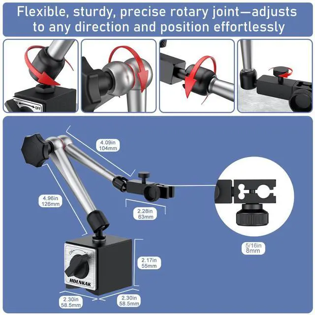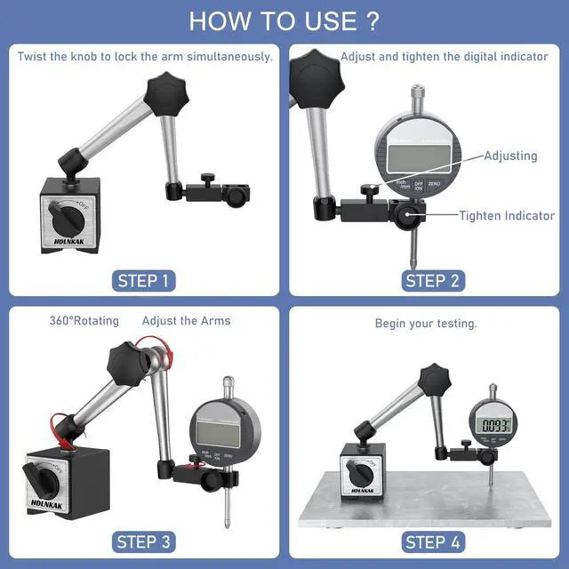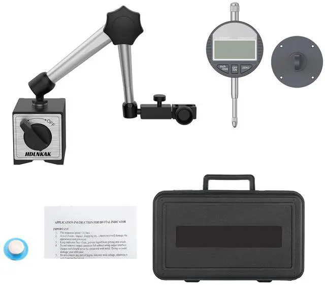 The Set Includes1 x Digital Dial Indicator, 1 Magnetic Base, 1 Storage Case. The Indicator Base is Compatible with All Most Dials / Digital Indicators and Other Market Indicators.