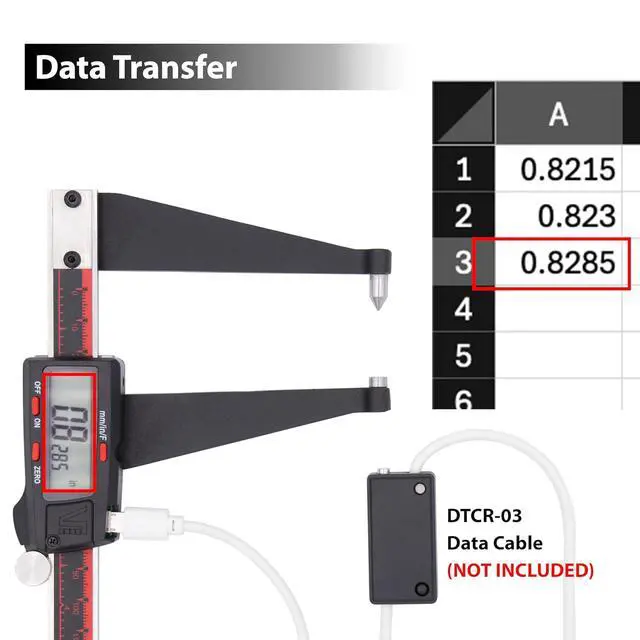 RS232 Data Transfer for PC Connectivity Designed with an RS232 data transfer port for seamless digital measurement recording. Requires " DTCR-03" cable (sold separately, NOT included). DO NOT use a regular USB cable to avoid connectivity issues.