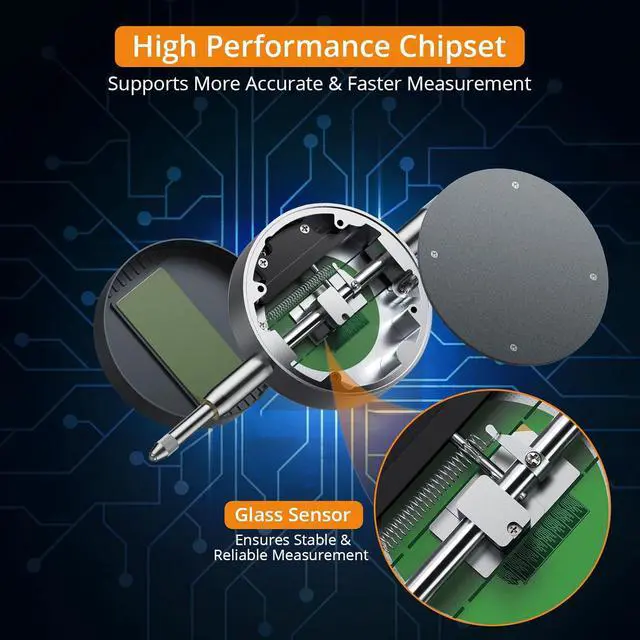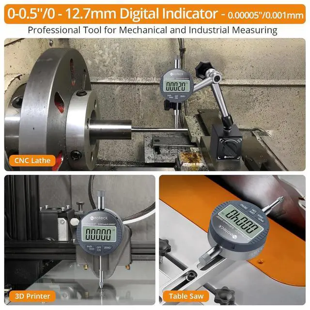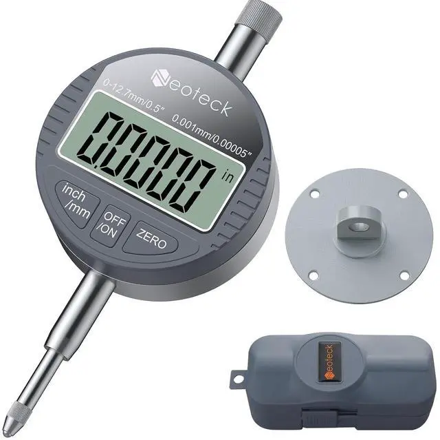 Aluminum Alloy Digital Dial Indicator Large LCD Display with 4 Digits, Be Used to Accurately Measure Small Linear Distances in Mechanical and Industrial Processes without Reading Errors, An Ideal Tool for Mechanical, Industrial Processes and Laboratory Use