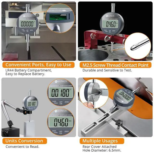 Inch/Metric ConversionSwitchable between mm and inch, Suitable for All Kinds of Measurement Zero Setting with Conveniencet PortsLR44 Battery Compartment is Easy to Replace Battery (Note: It Does Not Remember Zero Setting Position After Auto Off)