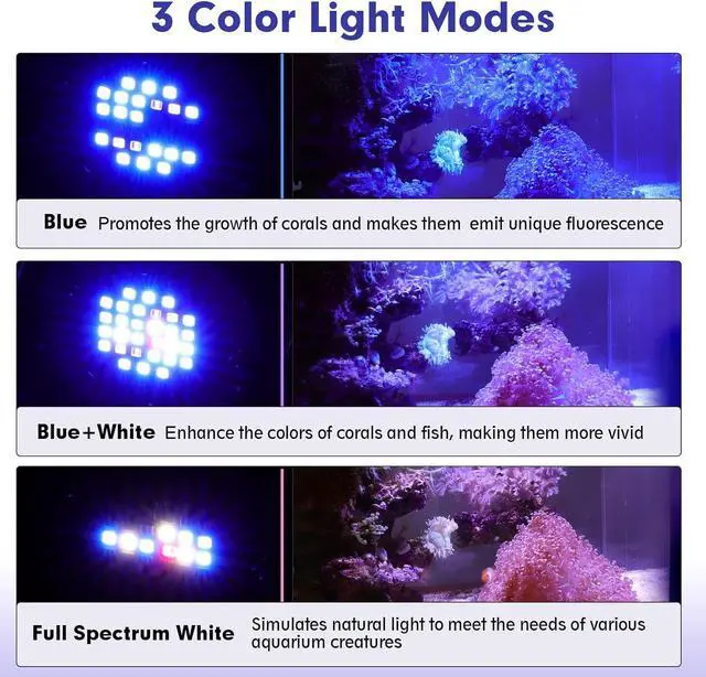 BUYING WITHOUT WORRY - The LED Marine light will support saltwater fish, live rock, soft coral, and LPS corals. For low light SPS corals, we suggest using two lights. reef LED lights provide two year quality assurance and 30days free replacement. Any questions from your side will be replied within 24hours.