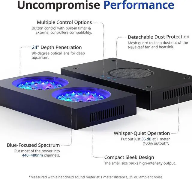 Effortlessly control the NavaReef through the built-in timer setting or external controller connectivity