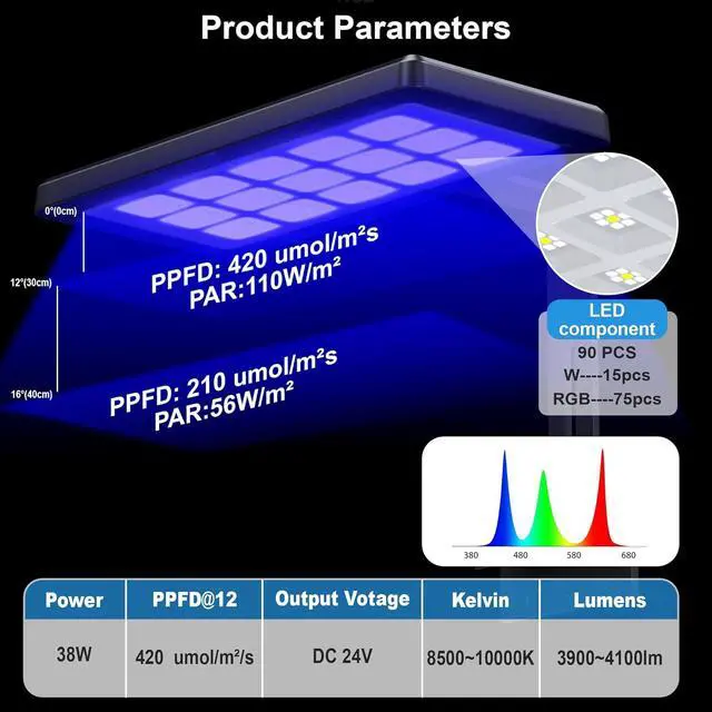 Led QTY: 90PCS Premium 1.5W 5054 LEDs provide bright illumination for plants and fish (White: