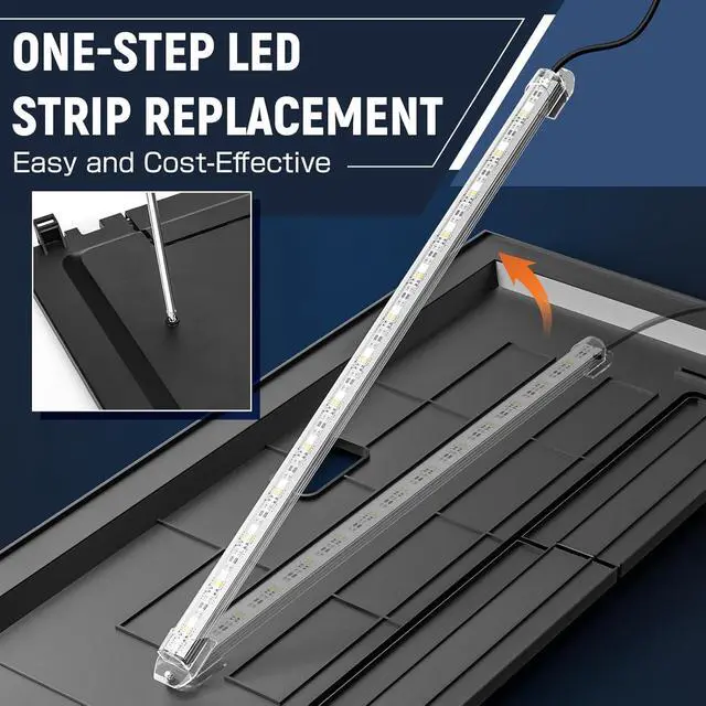Long-Lasting LED: This led aquarium light features a removable design: simply unscrew two screws to take out the tubes and replace them with new white or color LEDs, keeping your tank bright, colorful, and visually stunning