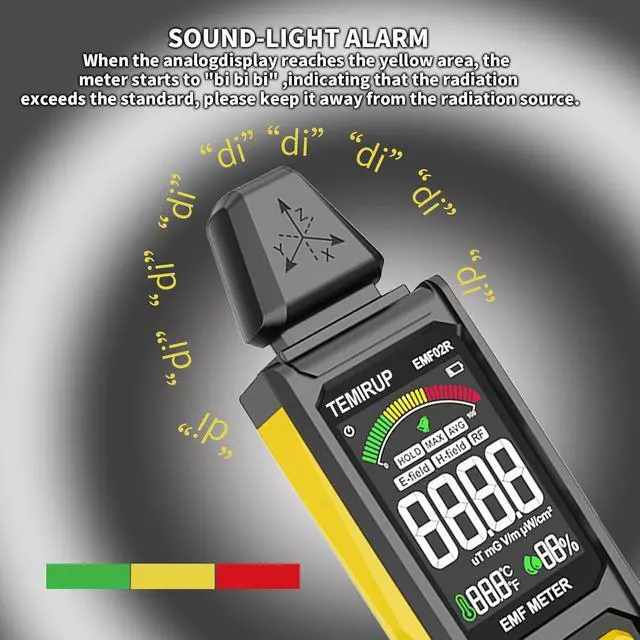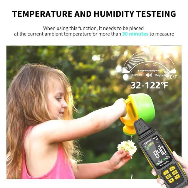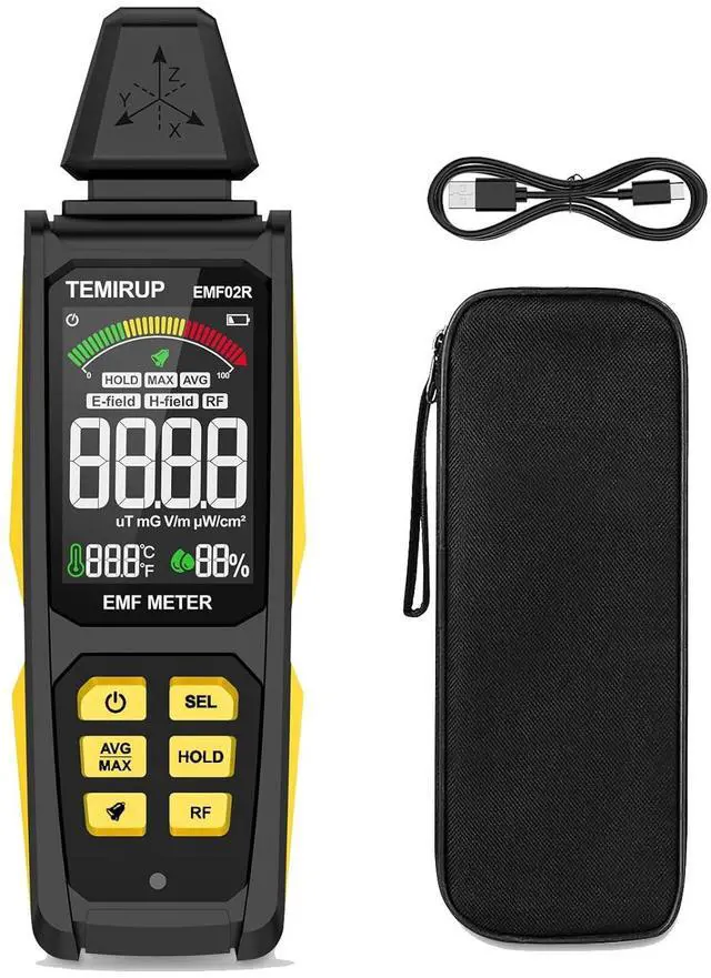 User-Friendly & Versatile UtilityEMF Meter equipped with a built-in electromagnetic radiation sensor, which can display the radiation value on an Large Colour LCD Screen after processing by the micro-control chip; Auto Power Off after 15 minutes without operation; Unit switch (/); The meter can test average or peak value (Maximum) reading and Hold the data for a view with a single keyLow Battery Indication so you never accidentally run out of juice; The EMF reader is equipped with a 2000mAh rechargeable battery and Type-C fast charging port