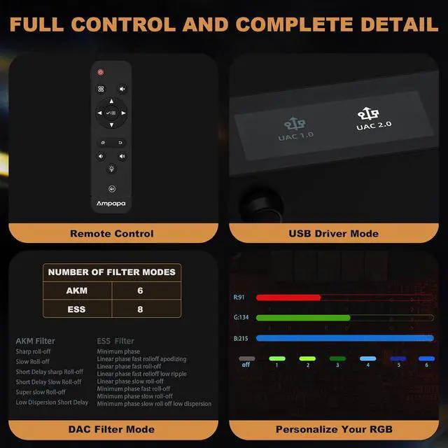 Full Control at Your Fingertips: Customize your audio with four swappable LME49720 op-amps, easily accessible via a top window. Q1 also features full-spectrum RGB lighting, remote control, Bluetooth reset, adjustable brightness, and 12V trigger out. Perfectly matched with the D1 for a cohesive stack both visually and functionally.